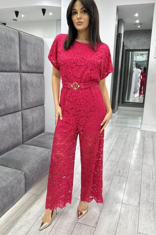 Uniwersalny kombinezon z koronkowego materiału. Elastyczny fason dopasowuje się do sylwetki. Dobry na rozmiary 36-42